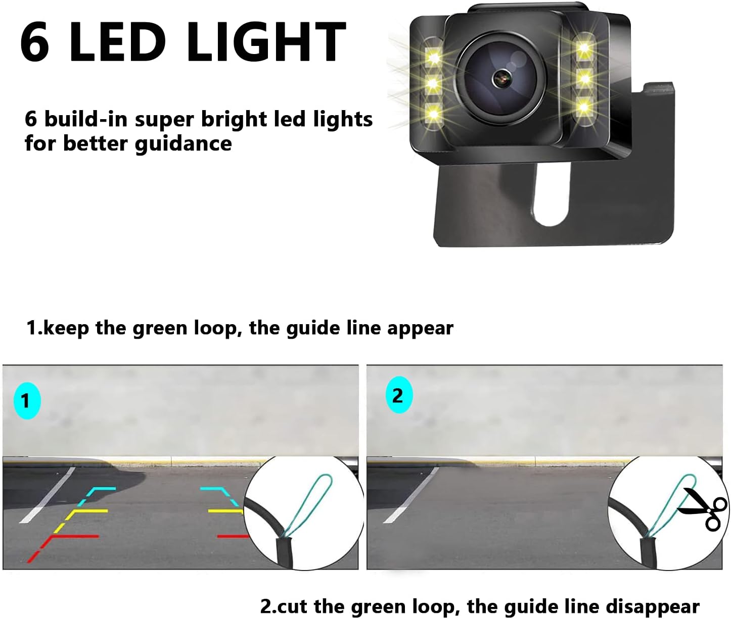 - 【 High-Quality Images Universal Car Backup Camera】6 LED super bright lights to illuminate the images when daylight is low and greatly enhances night vision with sharp images. The sensor will turn on the light automatically when you activate the reverse gear, which gives you the best view for parking.