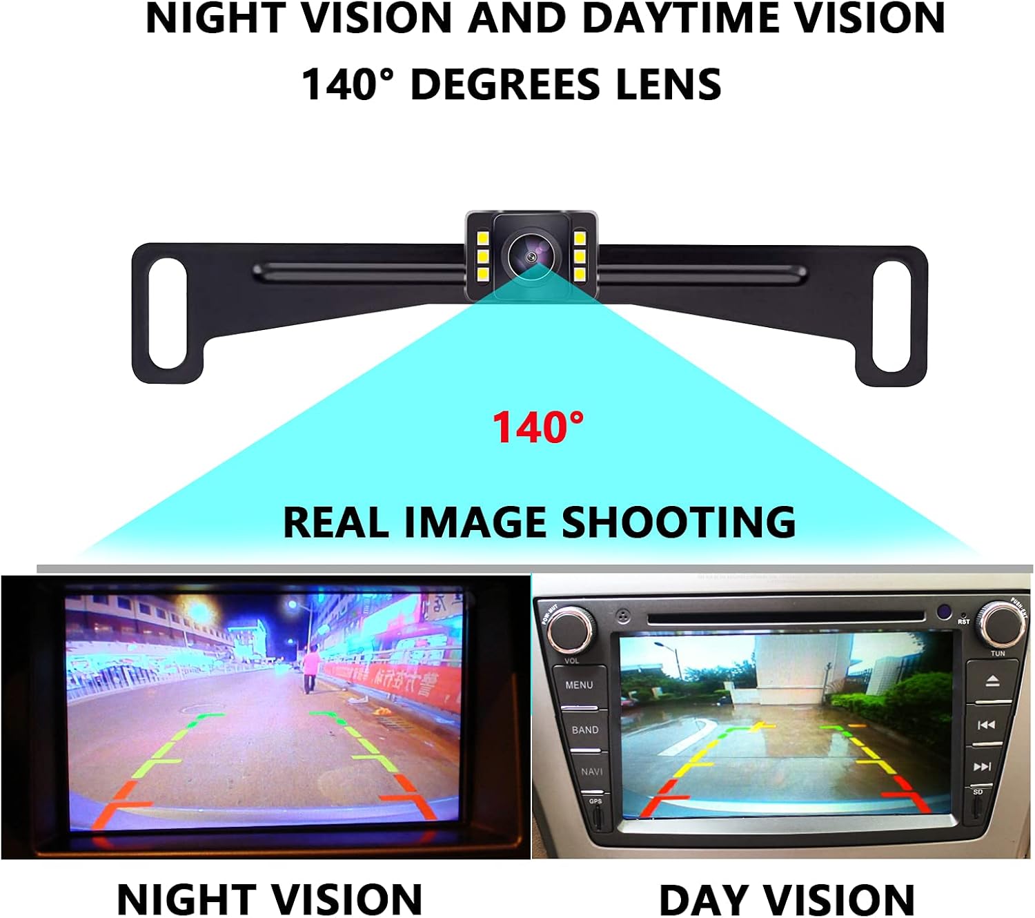 - 【 140° View Adjustable Angle License Plate Camera】The reverse camera will be protected from powerful jets of water from any direction, such as rain and a car wash. Works well in extreme weather. Adjustable vertical 140° perfect viewing angle, which allows you to adjust the camera to a position that’s best for you, effectively reducing the accident rate.