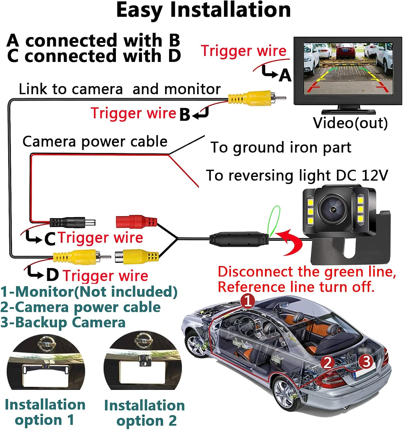 - 【Car Parking Reverse Camera Package Details】You will get 1 x Vehicle 6 LEDs Backup Camera, 1 x RCA Video Cable, 1 x Power Wire, 1 x User Manual. Any questions after receiving this rearview camera, please feel free to contact us, and we will respond fast.